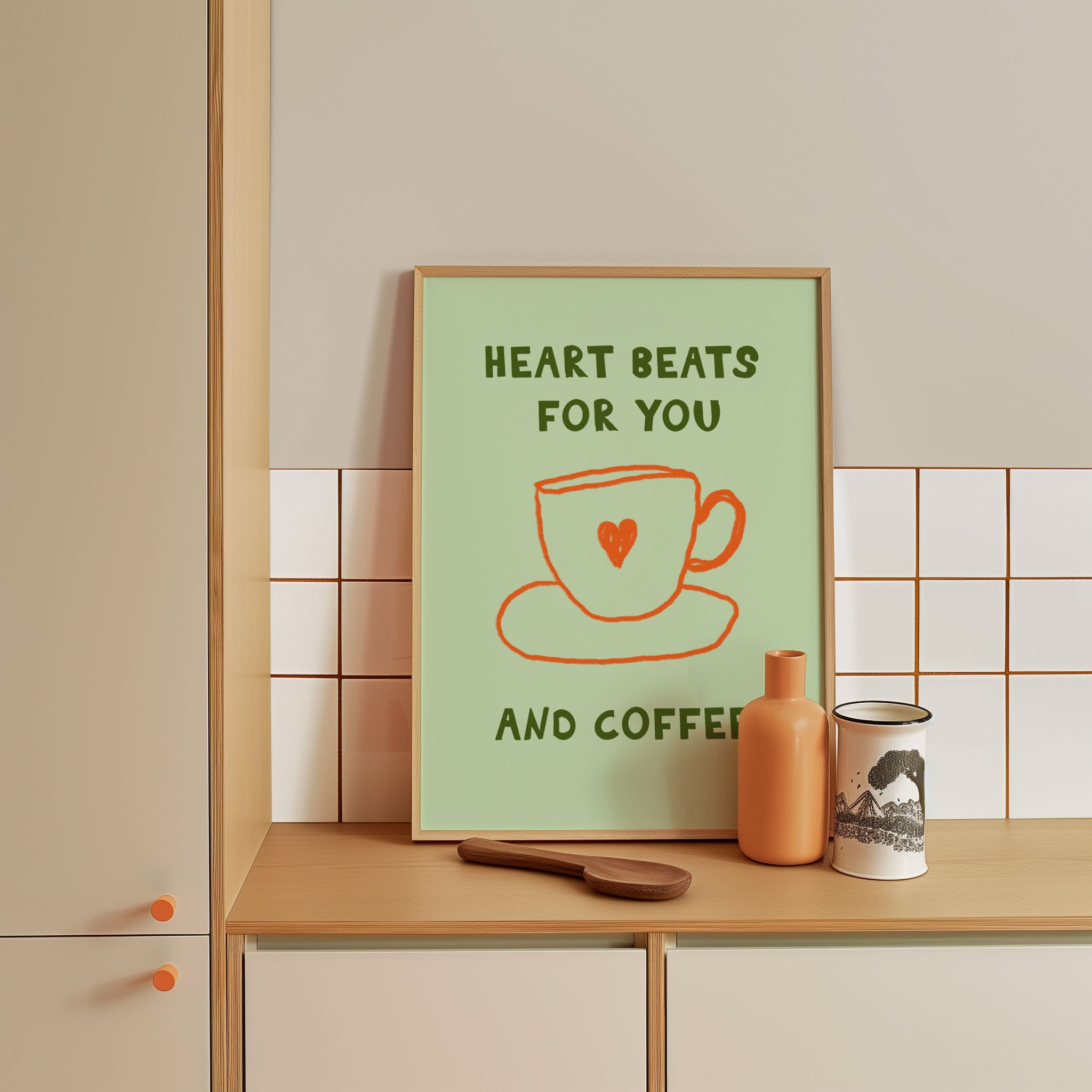 Transform your kitchen, café, or favorite serving space into a corner of creative flair with this trendy wall art print. Heart Beats and Coffee from our Kitchen and Cafe Art Collection features an artfully inspired illustration that exudes a bold yet minimalist vibe. This modern artwork brings a stylish, design-forward mood that pairs perfectly with today’s love for culinary spaces that reflect art, individuality, and taste. Ideal for anyone who appreciates beauty, self-expression, and contemporary decor in the heart of the kitchen or the soul of a café.