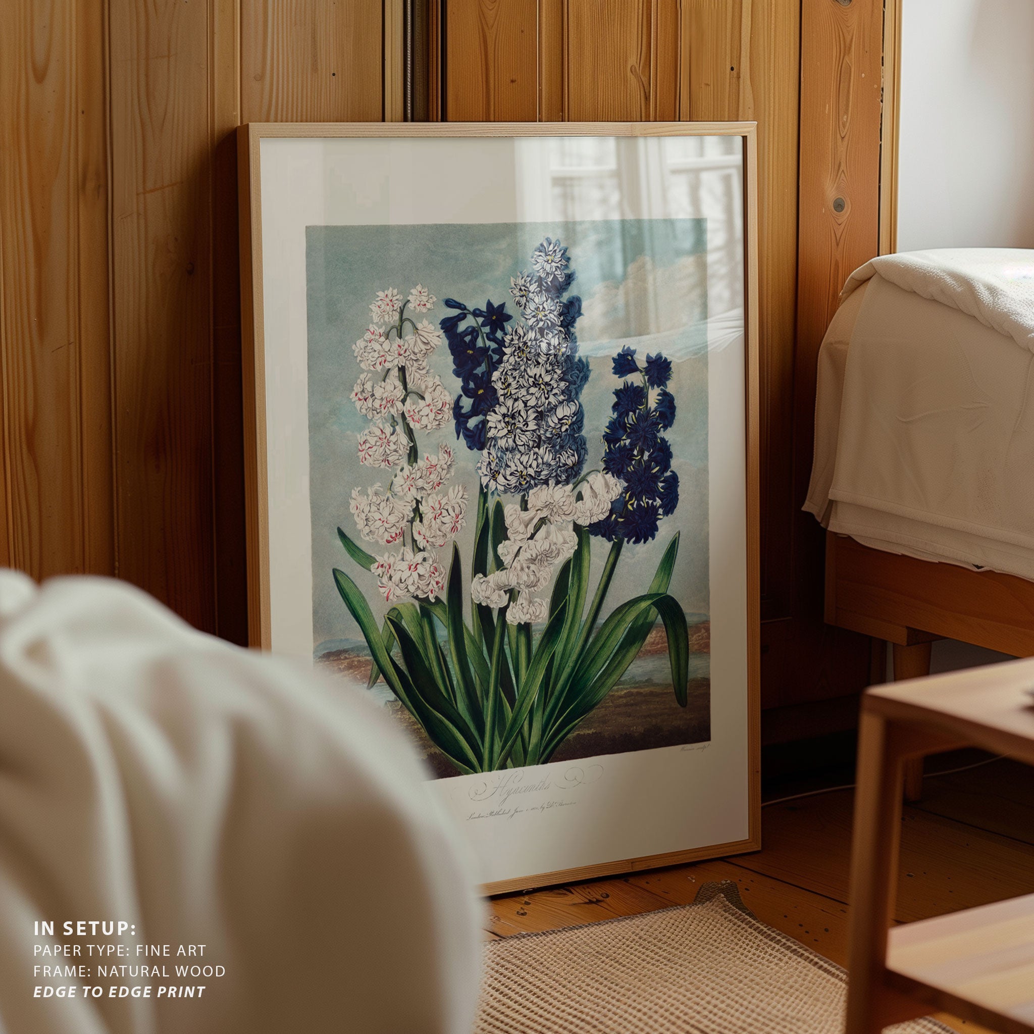 Elevate your space with the serene beauty of nature’s blooms. This art print, A Hyacinths from The Temple of Flora (1807), from our Botanical Art Print Collection celebrates organic forms and botanical grace, layering lush floral tones in a carefully curated palette that brings a calm, natural vibrancy to any room. Bring the gentle elegance of nature into your space with this captivating art print.