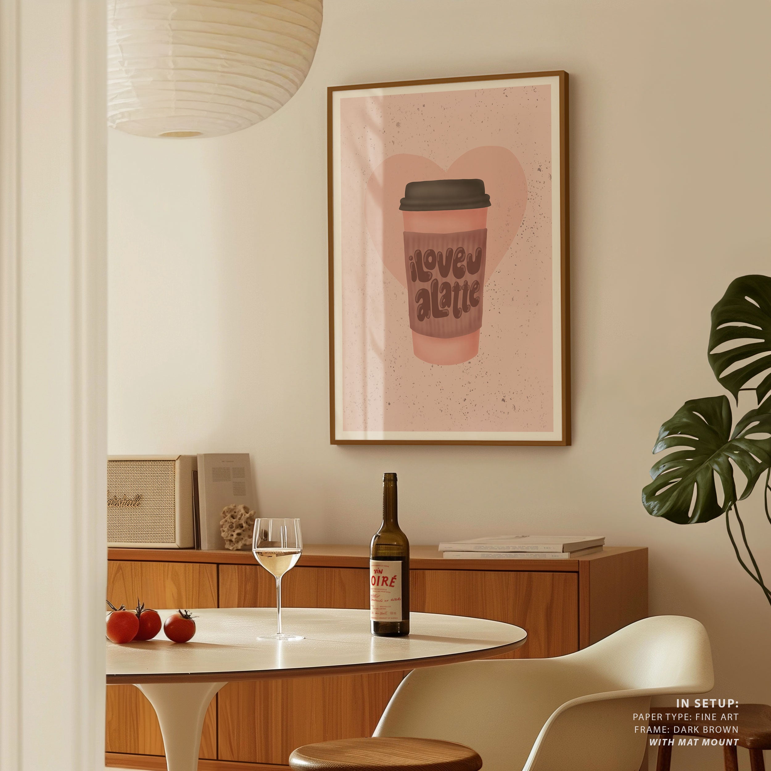 Transform your kitchen, café, or favorite serving space into a corner of creative flair with this trendy wall art print. Love You a Latte from our Kitchen and Cafe Art Collection features an artfully inspired illustration that exudes a bold yet minimalist vibe. This modern artwork brings a stylish, design-forward mood that pairs perfectly with today’s love for culinary spaces that reflect art, individuality, and taste. Ideal for anyone who appreciates beauty, self-expression, and contemporary decor in the heart of the kitchen or the soul of a café.