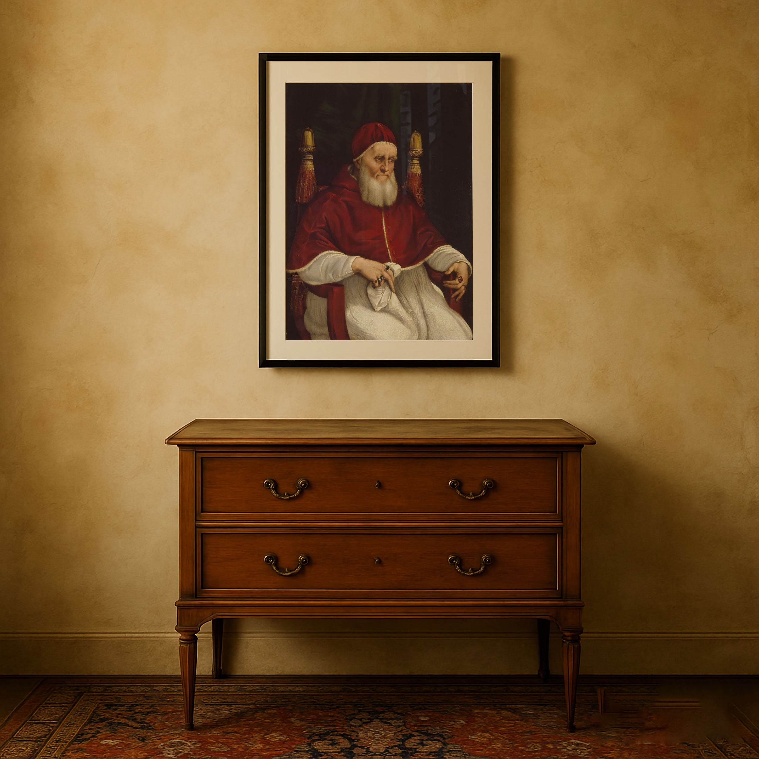 Bring elegance and harmony into your space with this beautiful artwork, Portrait of Pope Julius II Della Rovere, from our Raphael Painting Prints Collection. This piece reveals a quiet yet compelling interplay of rich tones, gentle shapes, and expressive brushwork that captures both warmth and depth. Subtle painting details, classic art textures, and refined color transitions enhance its enduring charm. Its balanced contrasts and serene atmosphere introduce a thoughtful and artistic presence to any interior, enriching your space with the timeless poetry of this iconic artistic style