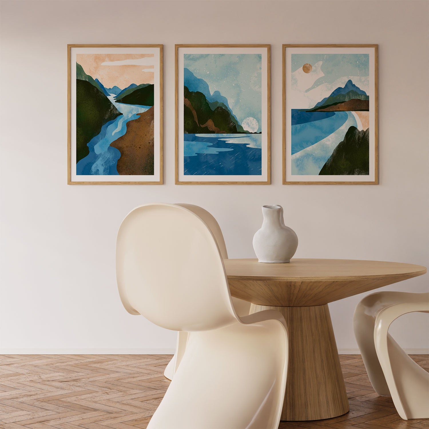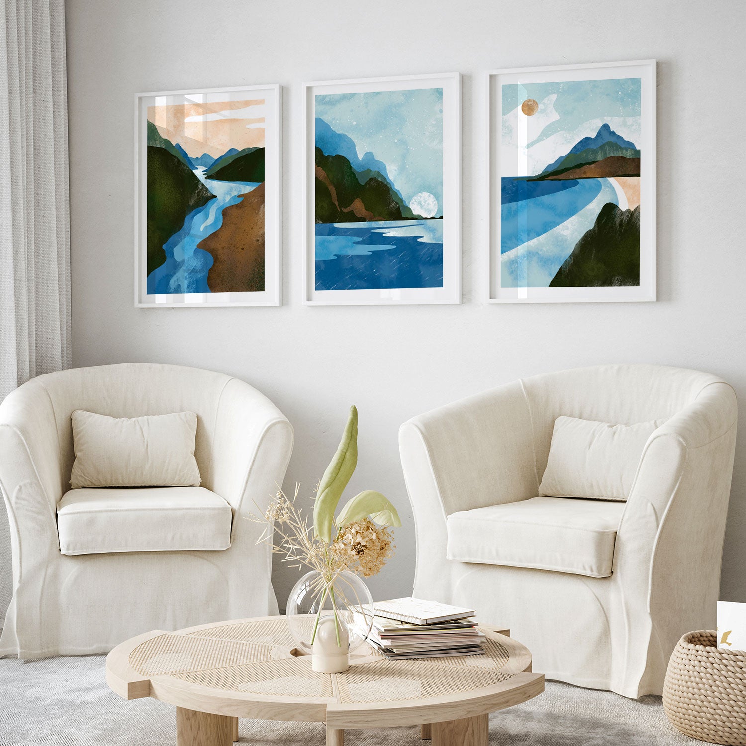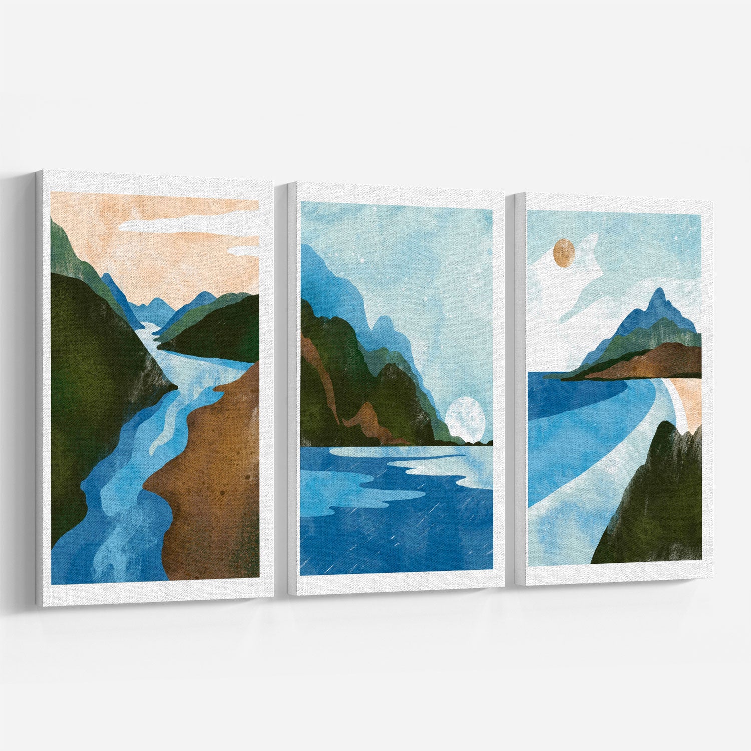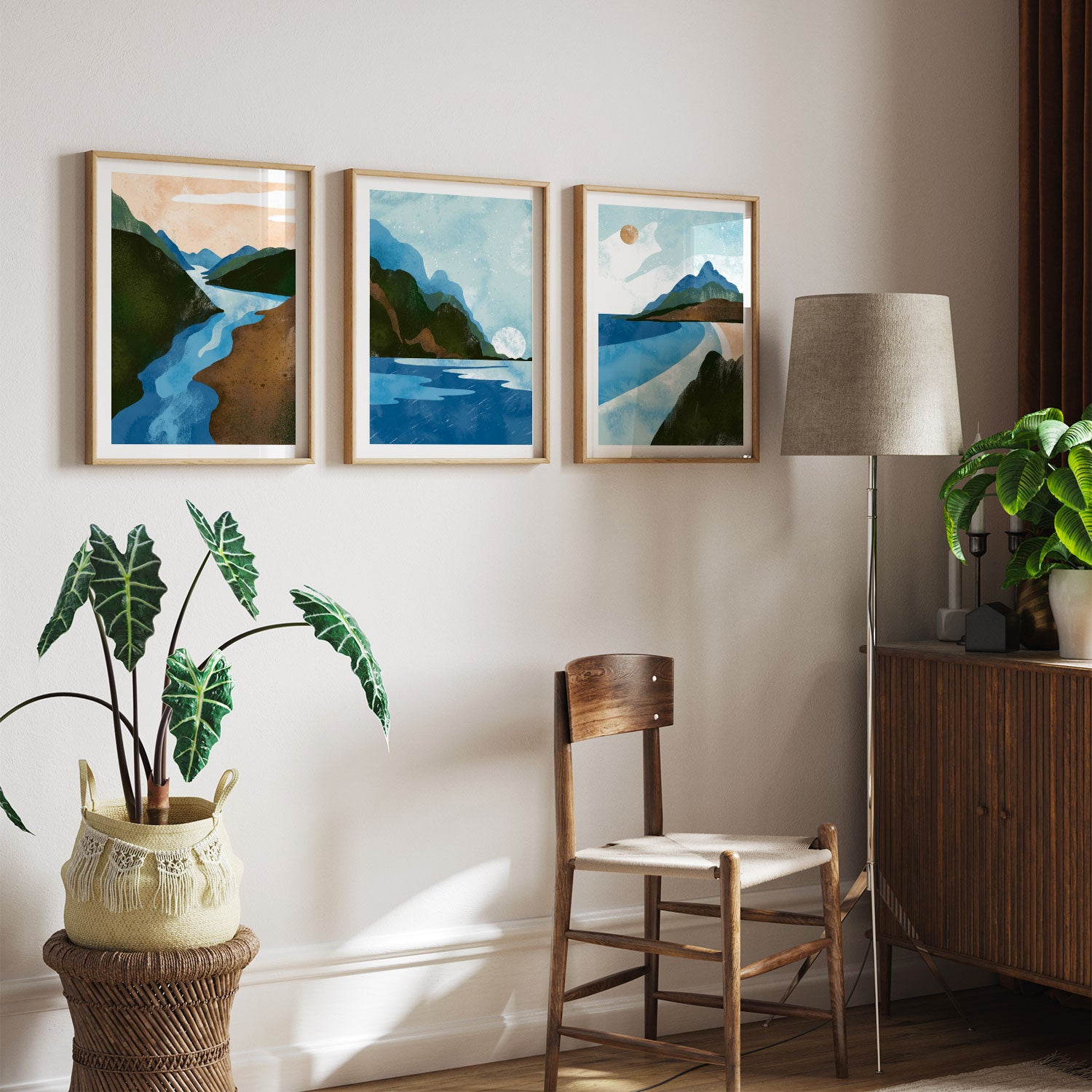 Scandinavian Style. Abstract Geometric Mountain Landscape II - from our Set of 3 Art Prints Collection is printed on premium-quality canvas or fine art paper with a smooth matte finish and vibrant, long-lasting colors that bring each detail to life. These Set of 3 Wall Art Prints are made with exceptional color clarity and precision, following the same high standards used by professional galleries and art studios. Perfect for art lovers or anyone looking to add a touch of modern botanical elegance to their space, these prints look stunning in any bedroom, living room, bathroom, balcony, or office. Get inspired by our designer-curated art sets, and complete your space with handmade, custom frames crafted in-house for a beautifully finished look.