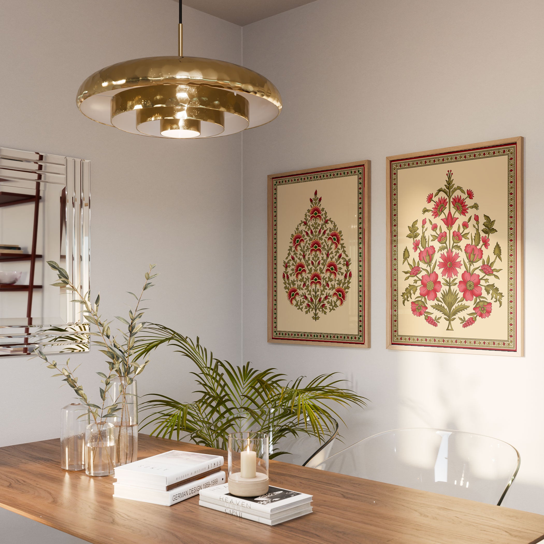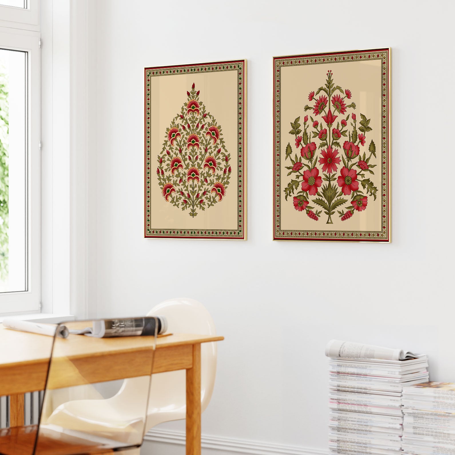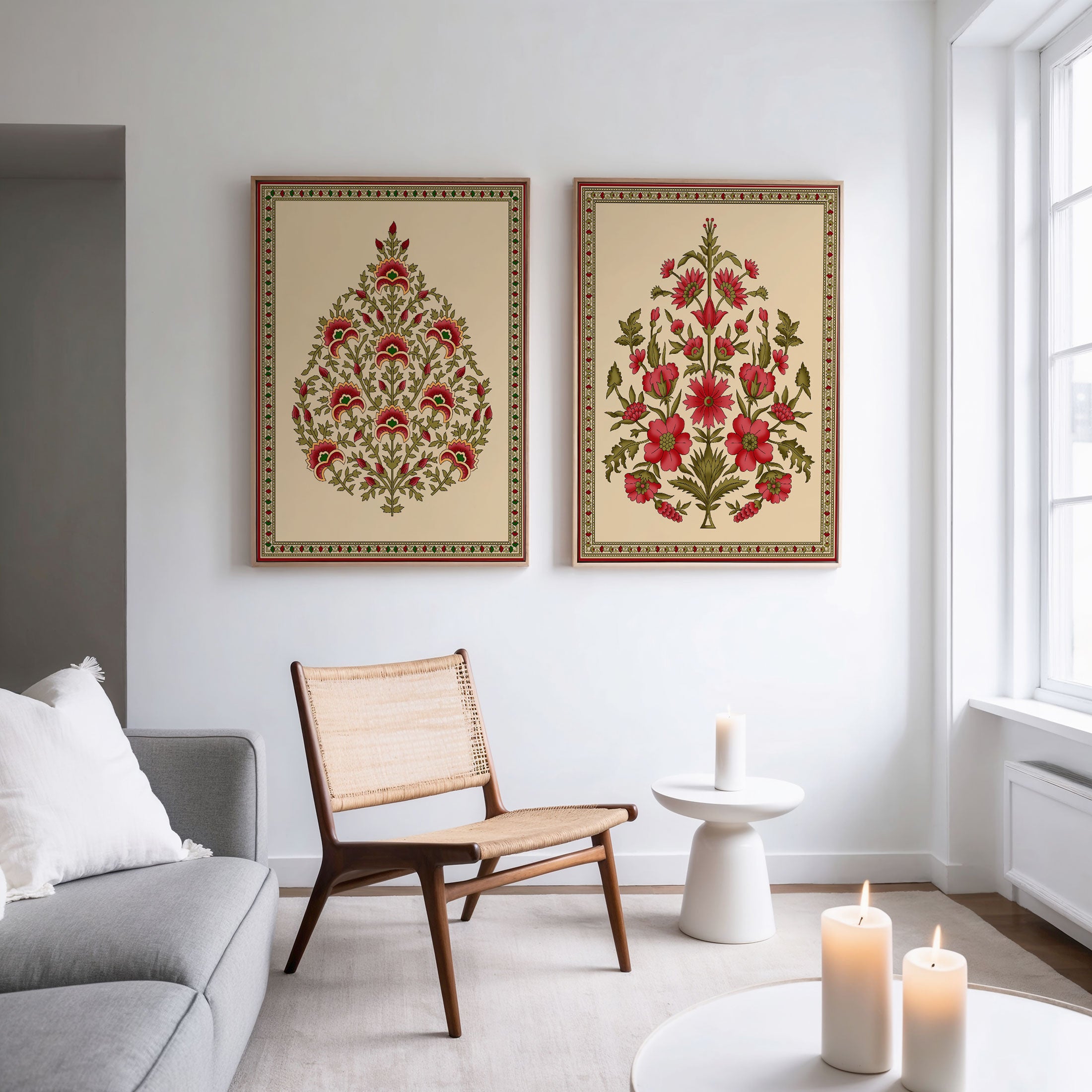 Seamless Mughal Motifs - from our Set of 2 Art Prints Collection is printed on premium-quality canvas or fine art paper with a smooth matte finish and vibrant, long-lasting colors that bring each detail to life. These Set of 2 Wall Art Prints are made with exceptional color clarity and precision, following the same high standards used by professional galleries and art studios. Perfect for art lovers or anyone looking to add a touch of modern botanical elegance to their space, these prints look stunning in any bedroom, living room, bathroom, balcony, or office. Get inspired by our designer-curated art sets, and complete your space with handmade, custom frames crafted in-house for a beautifully finished look.