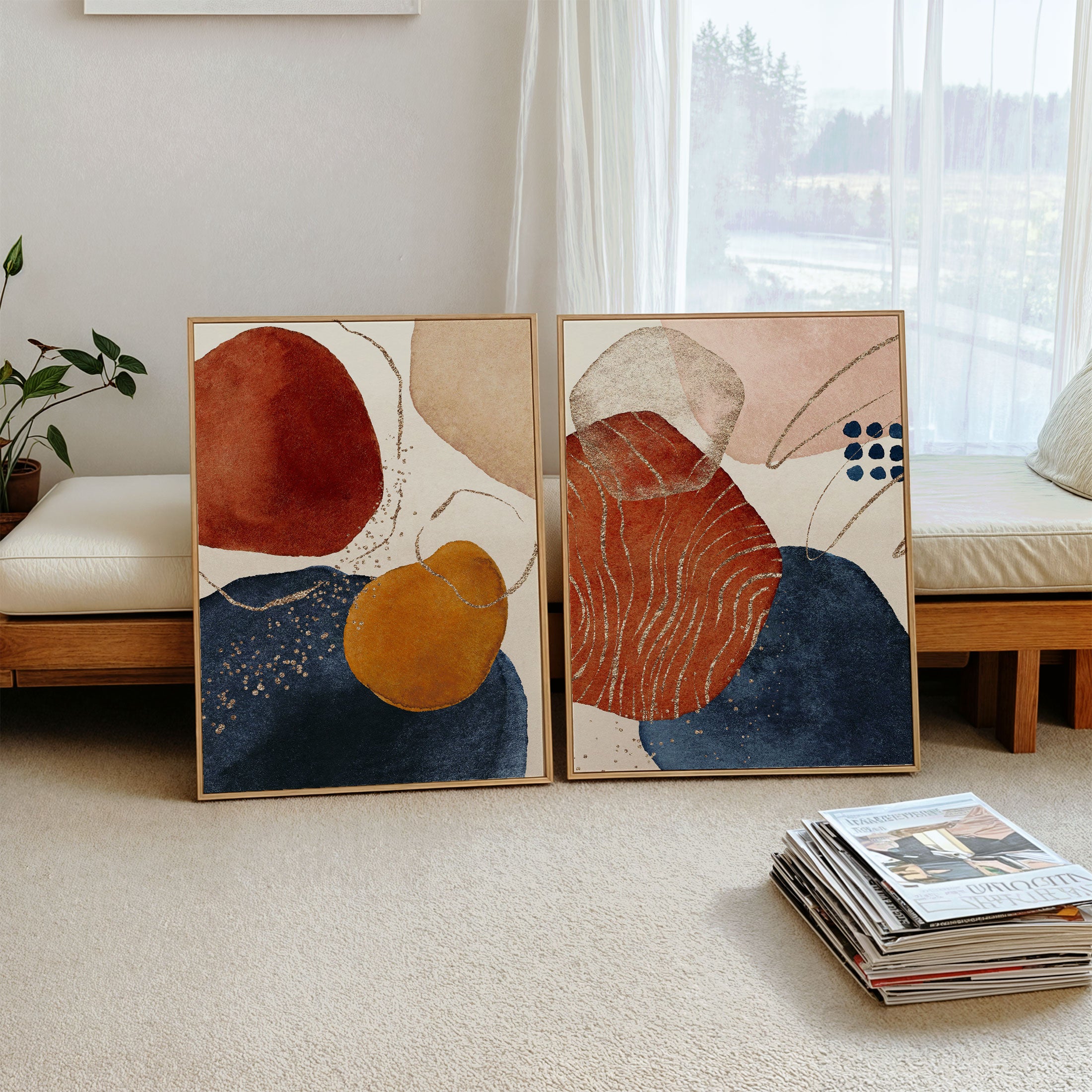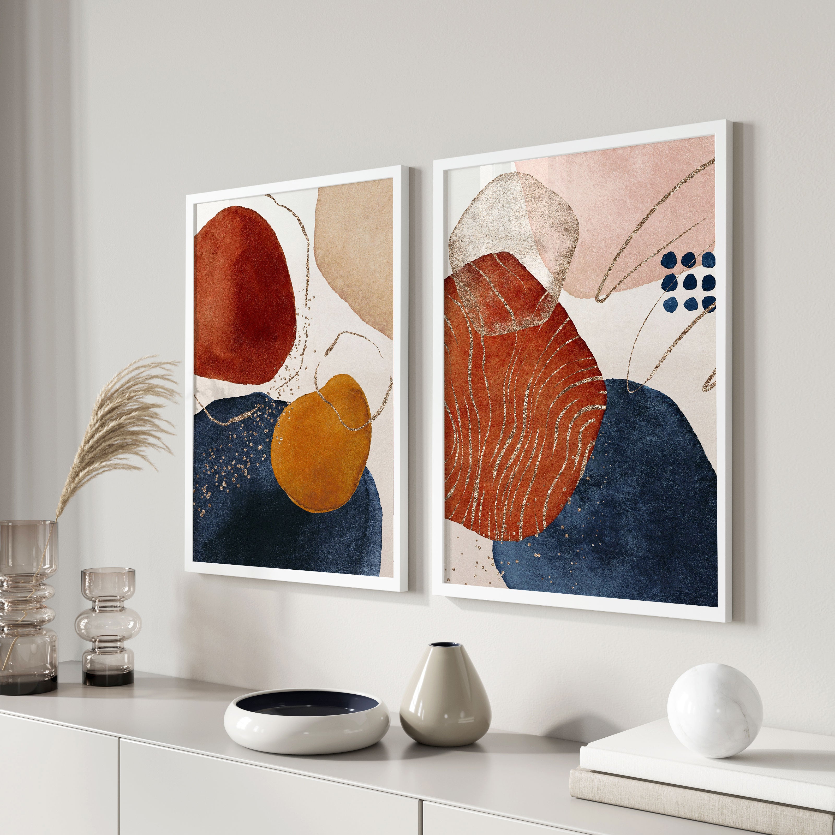 Terracotta Navy Blue Neutral - from our Set of 2 Art Prints Collection is printed on premium-quality canvas or fine art paper with a smooth matte finish and vibrant, long-lasting colors that bring each detail to life. These Set of 2 Wall Art Prints are made with exceptional color clarity and precision, following the same high standards used by professional galleries and art studios. Perfect for art lovers or anyone looking to add a touch of modern botanical elegance to their space, these prints look stunning in any bedroom, living room, bathroom, balcony, or office. Get inspired by our designer-curated art sets, and complete your space with handmade, custom frames crafted in-house for a beautifully finished look.