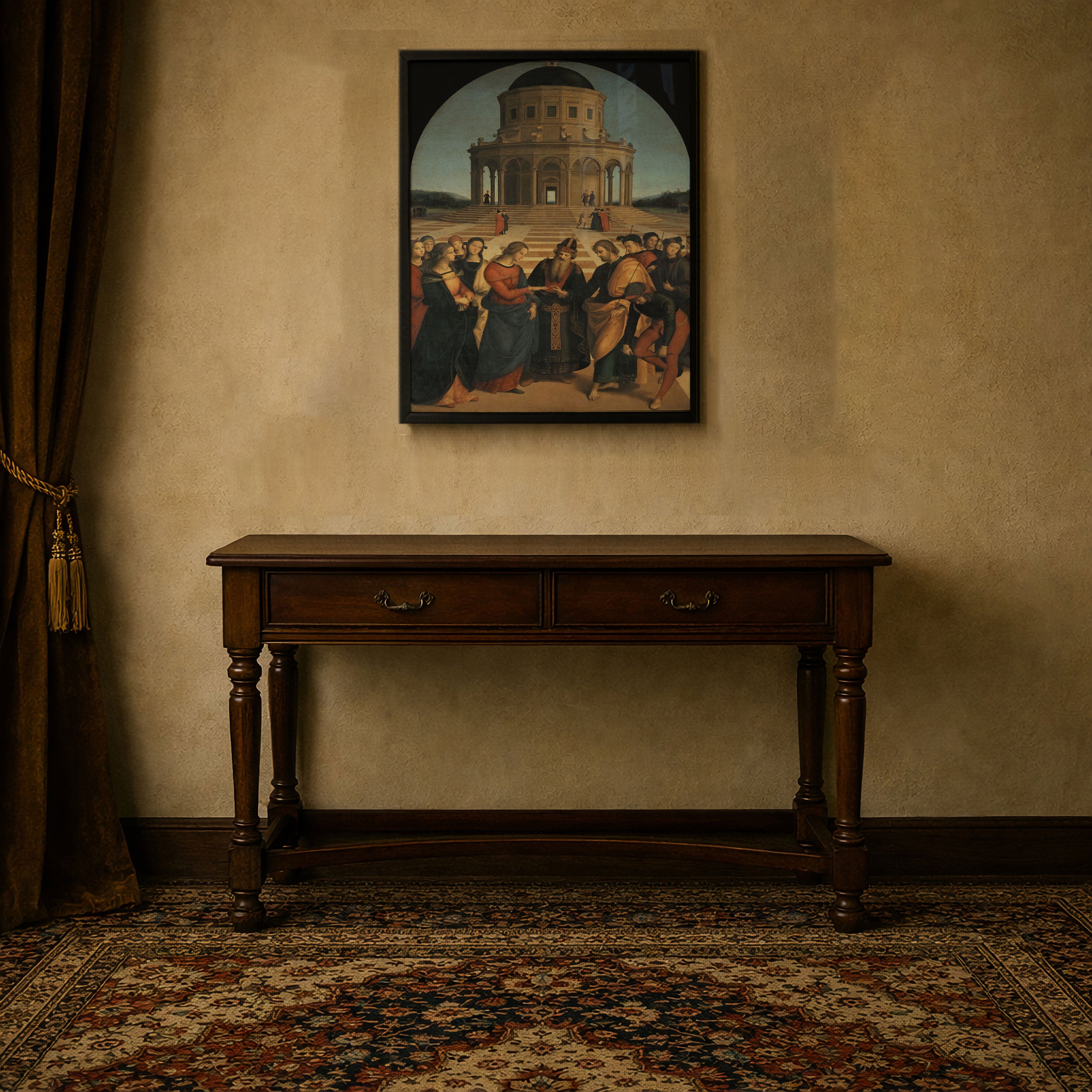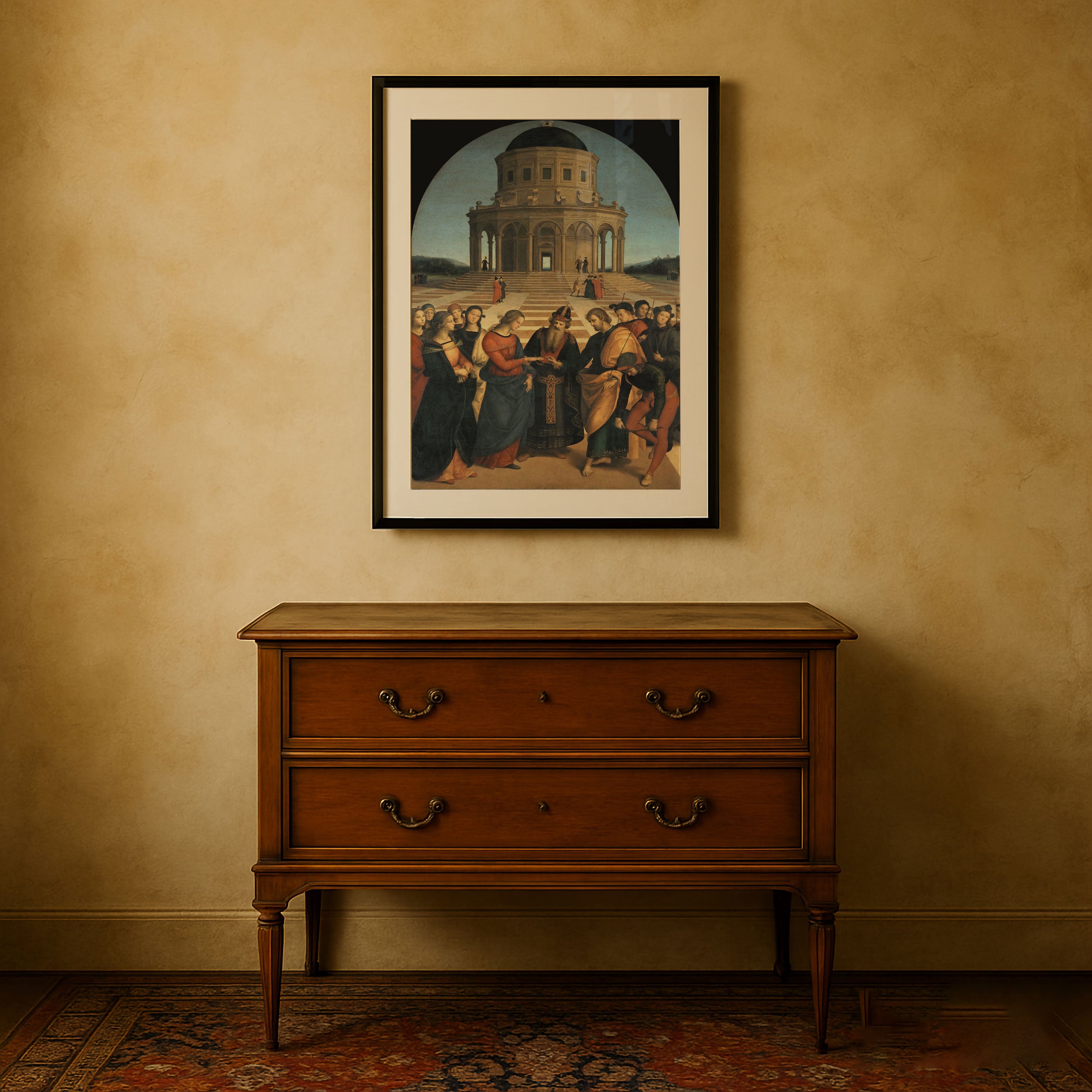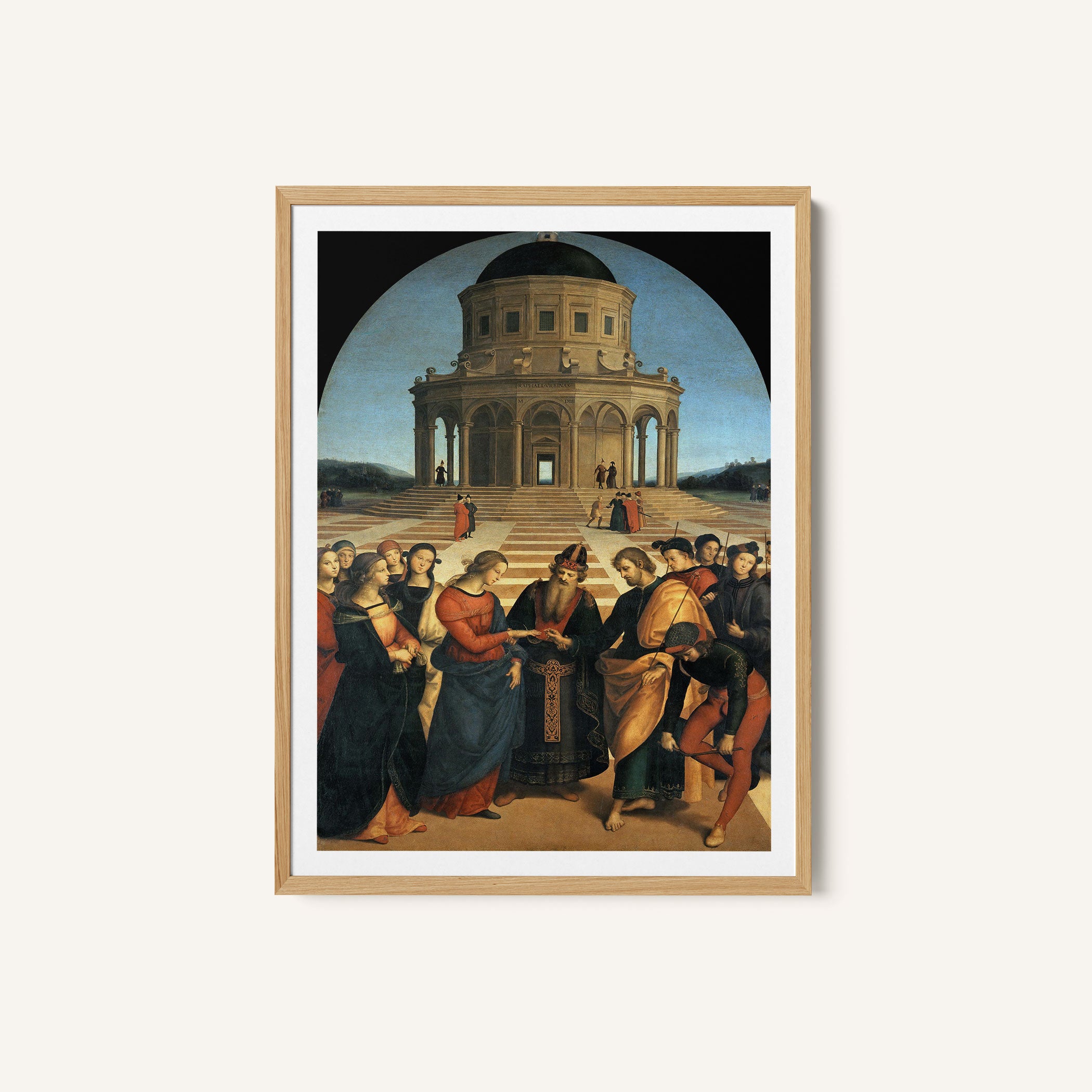 Bring elegance and harmony into your space with this beautiful artwork, The Marriage of the Virgin, from our Raphael Painting Prints Collection. This piece reveals a quiet yet compelling interplay of rich tones, gentle shapes, and expressive brushwork that captures both warmth and depth. Subtle painting details, classic art textures, and refined color transitions enhance its enduring charm. Its balanced contrasts and serene atmosphere introduce a thoughtful and artistic presence to any interior, enriching your space with the timeless poetry of this iconic artistic style