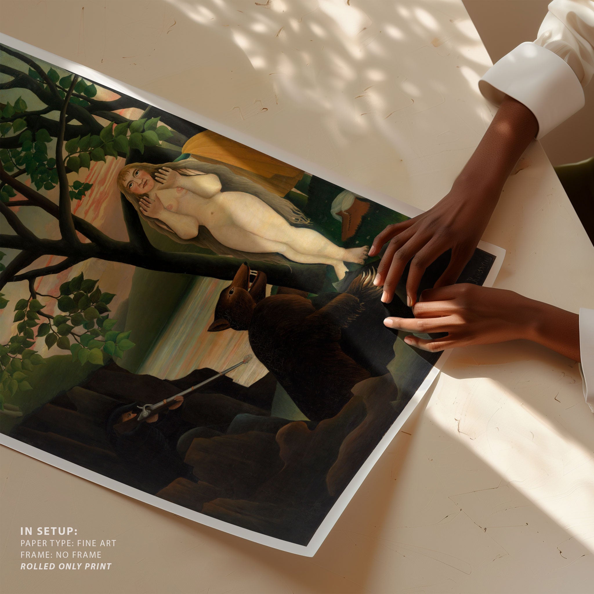Bring elegance and harmony into your space with this beautiful artwork, Unpleasant Surprise, from our Henri Rousseau Art Prints Collection. This piece reveals a quiet yet compelling interplay of deep tones, soft contours, and expressive brushwork that conveys both intimacy and strength. Subtle painting details, classic art textures, and refined color layering enhance its timeless appeal. Its gentle contrasts and inviting atmosphere bring a refined and contemplative touch to any interior, enriching your space with the timeless poetry of this iconic artistic style.