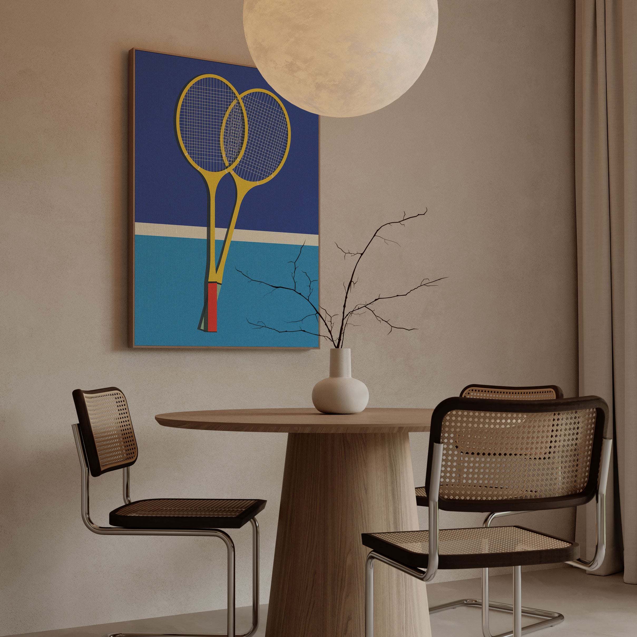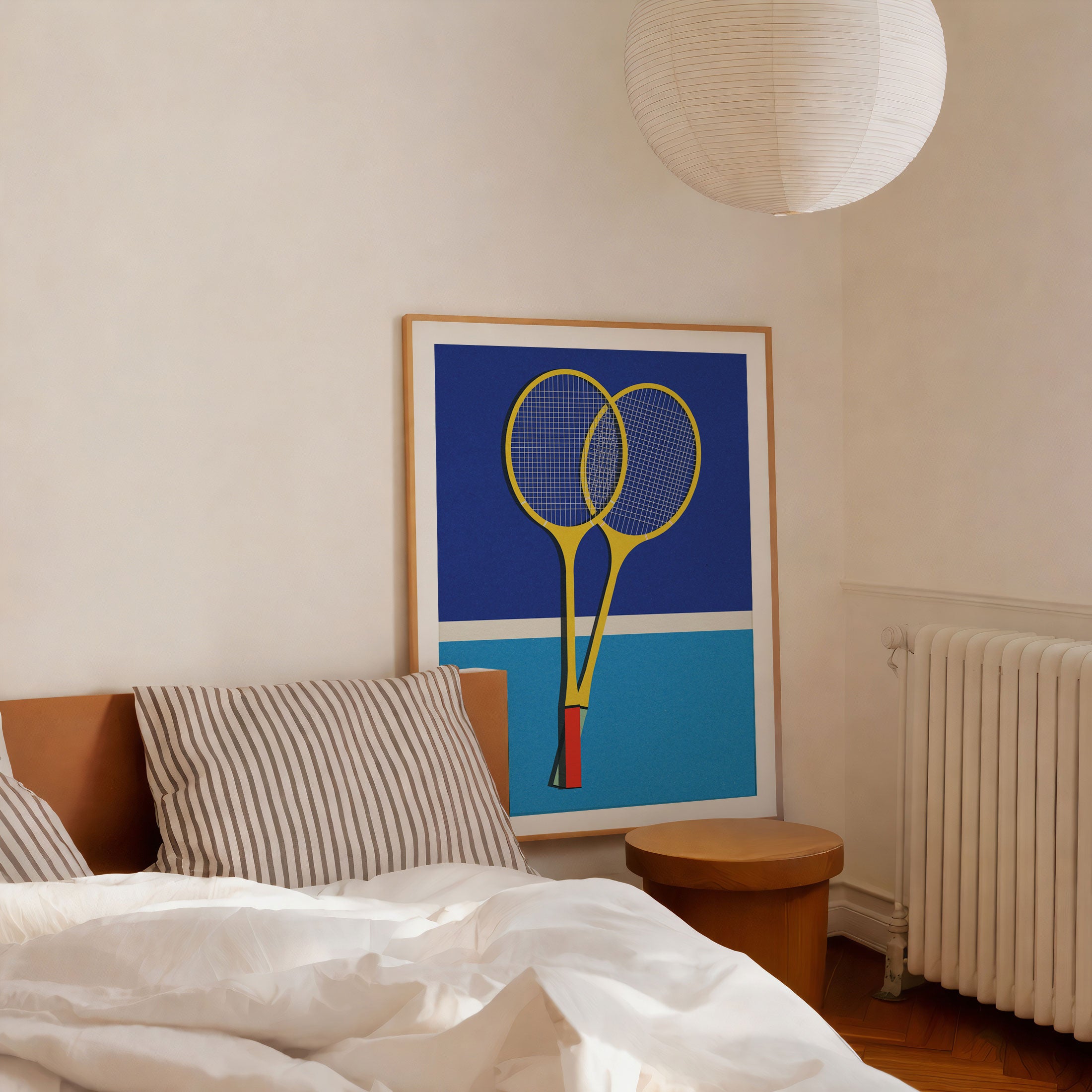 Elevate modern interiors with refined visual storytelling and bold artistic expression in this captivating artwork, Wooden Badminton Rackets, from our Rosi Feist Art Prints Collection. Designed to celebrate surreal visual art and contemporary collage aesthetics, this artwork blends dreamlike landscapes, symbolic human figures, and poetic contrasts to create a striking yet harmonious visual presence. Rooted in modern artistic expression, it adds depth, emotion, and creative intrigue to modern, eclectic, and art-inspired interiors.