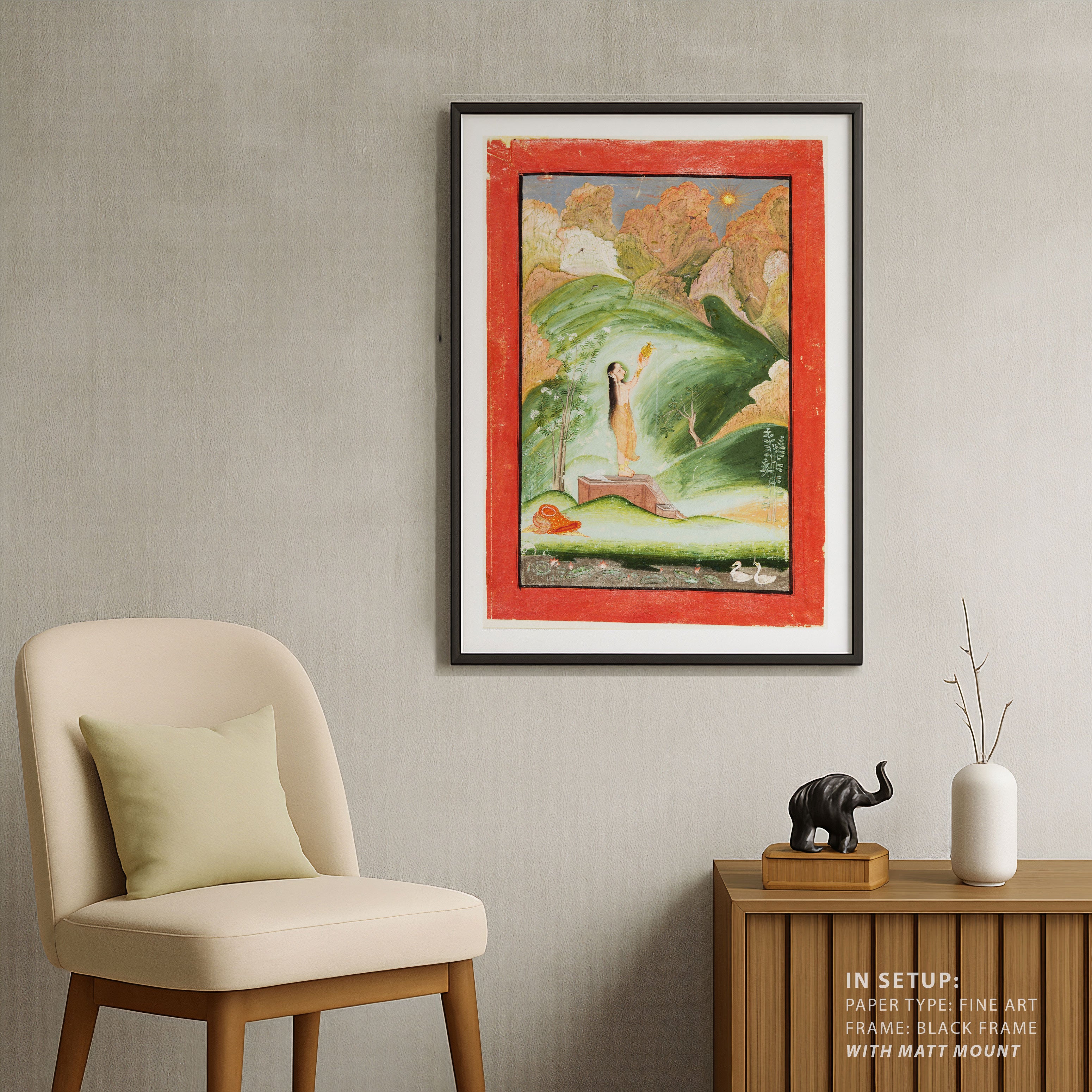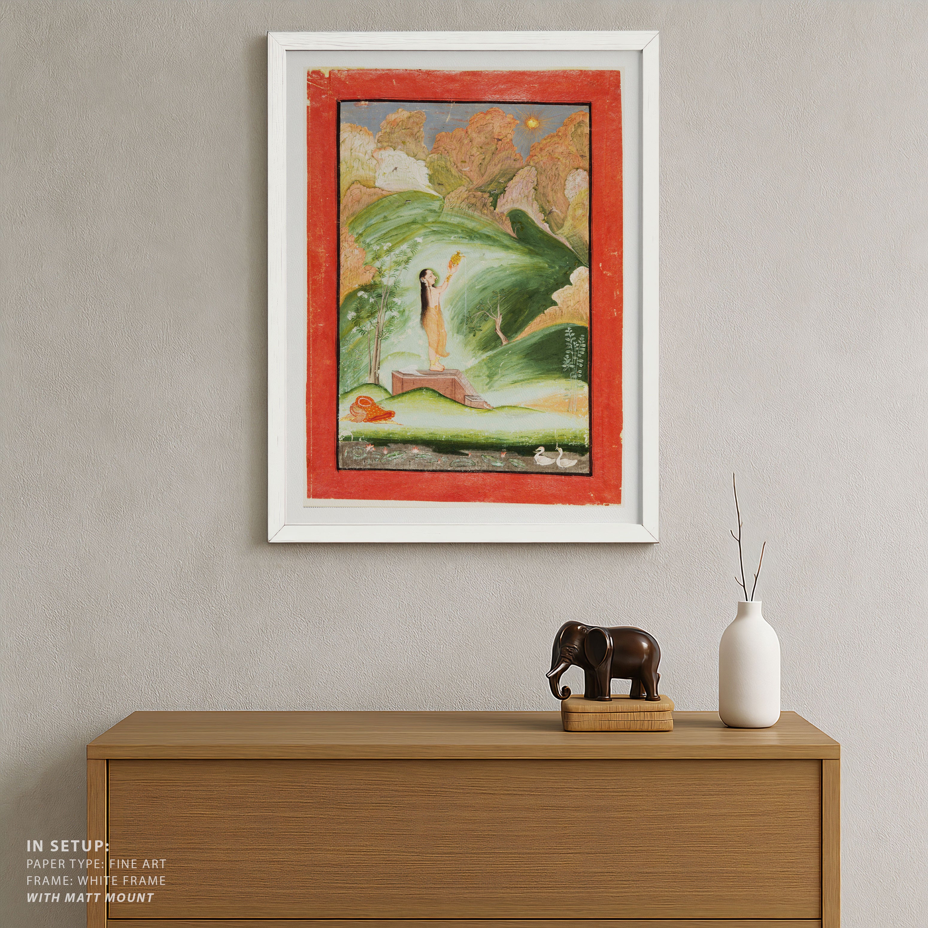 Bring elegance and cultural harmony into your space with this beautiful artwork, Worship of the Rising Sun, from our Classical Indian Art Collection. This timeless artwork features expressive figures, symbolic motifs, intricate detailing, and harmonious compositions inspired by India’s rich artistic traditions. Perfect for traditional, heritage, eclectic, and contemporary interiors, Indian folk and classical wall art adds depth, warmth, and a sense of history and storytelling to every interior.