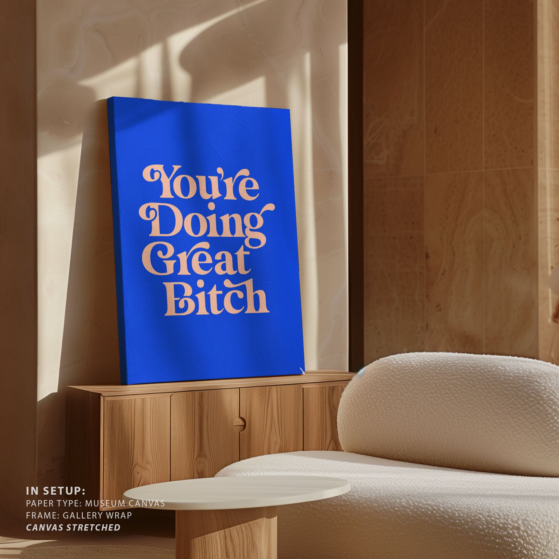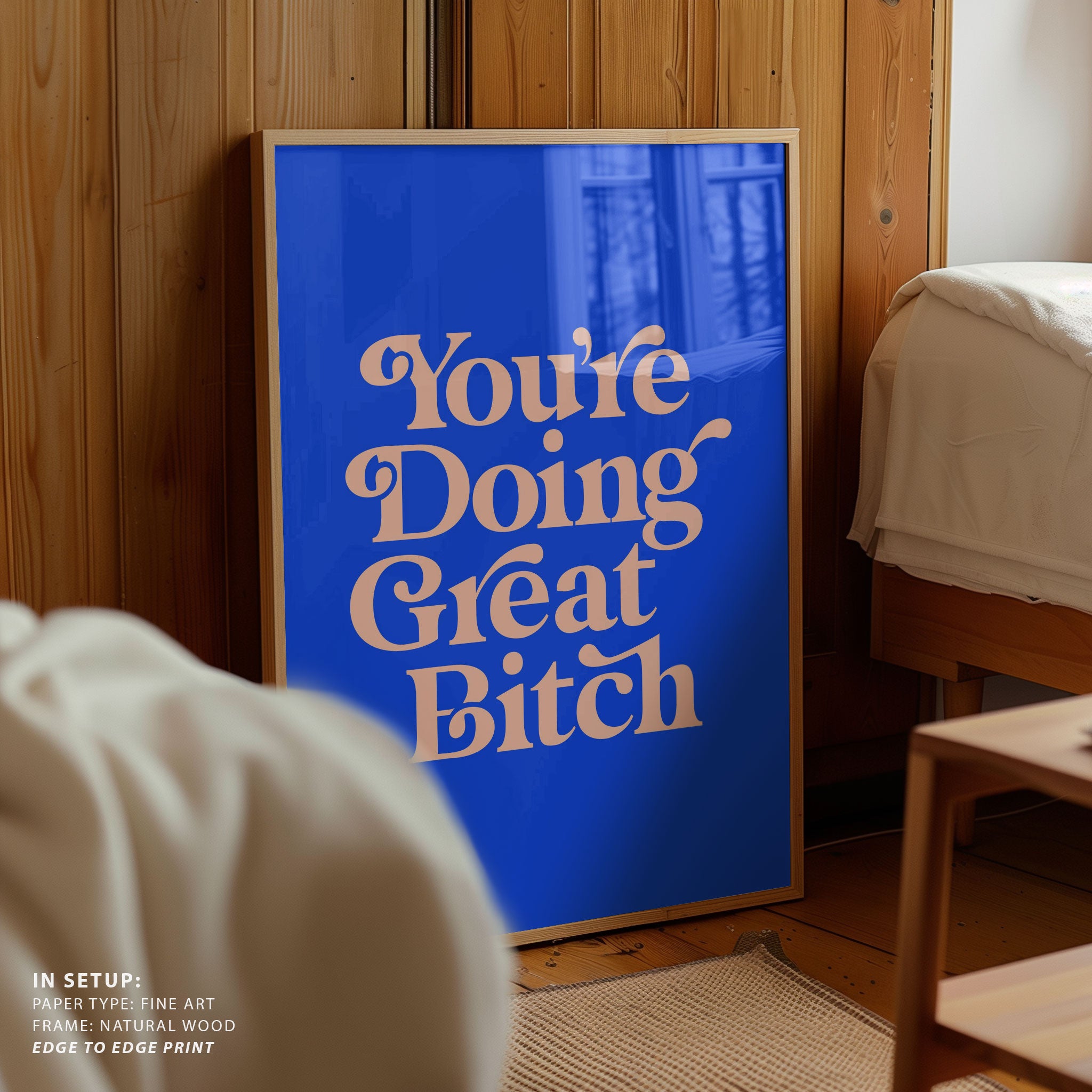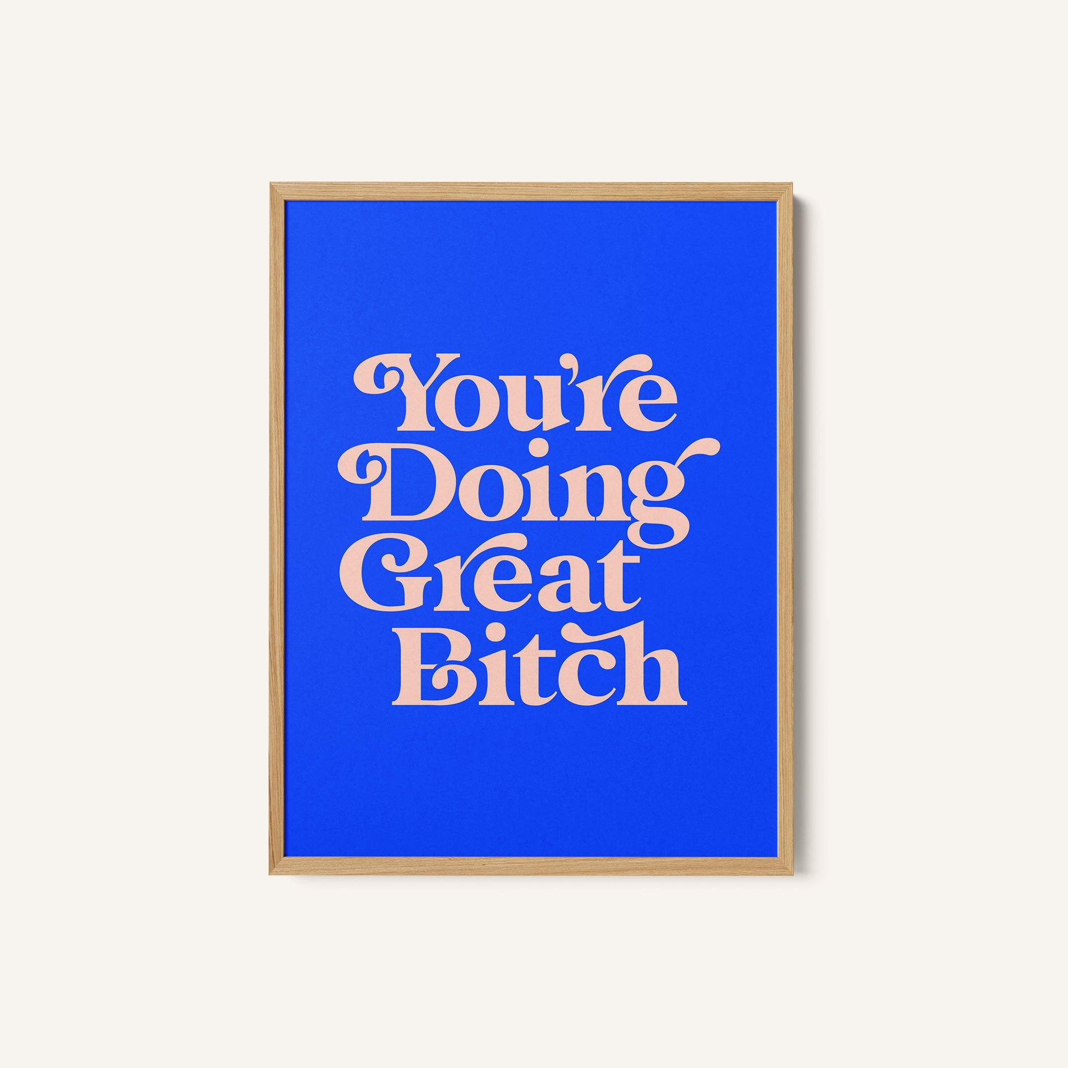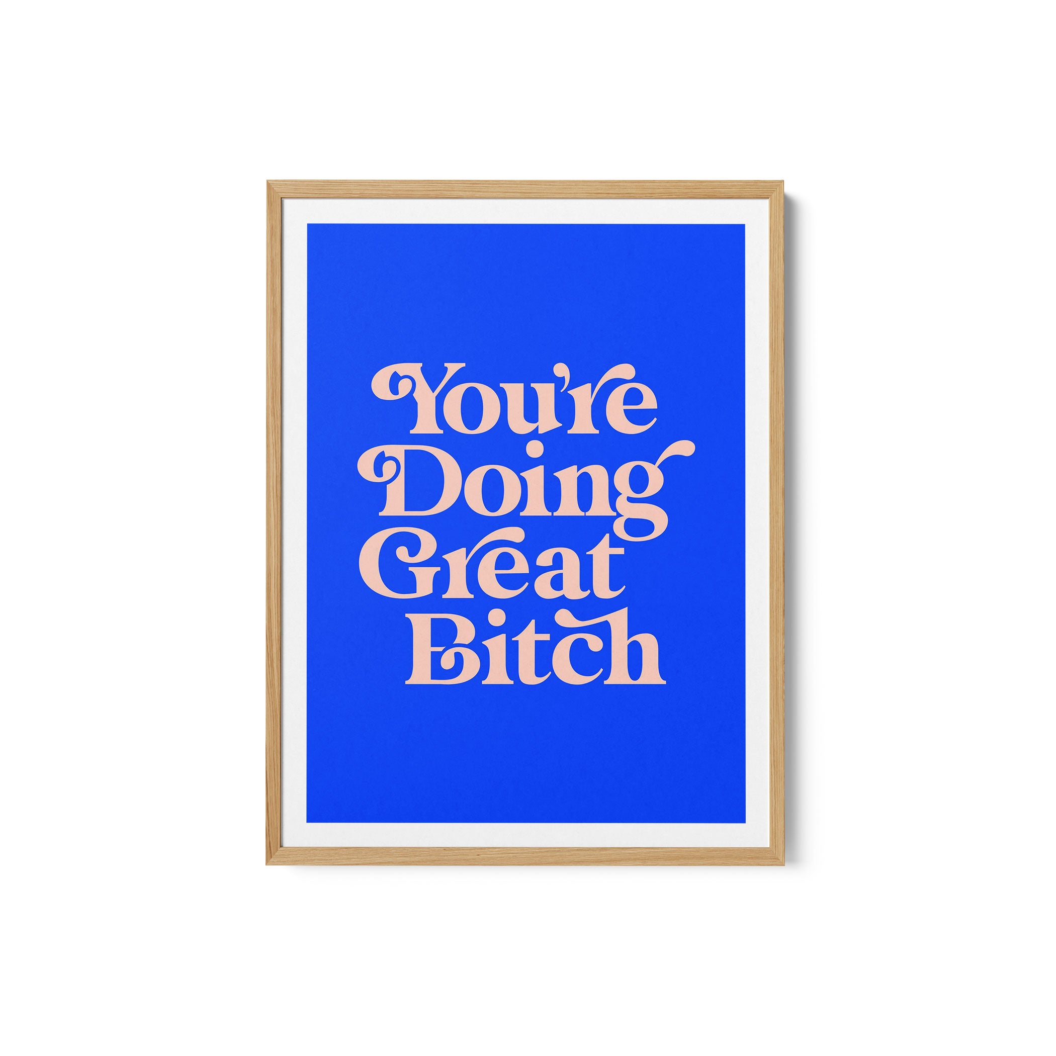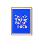 Infuse your space with modern inspiration and expressive design through this beautiful artwork, You're Doing Great Bitch, from our Text and Quotes Art Prints Collection. Created to embody contemporary visual storytelling with refined simplicity, this artwork combines clean composition, intentional typography, and well-balanced color contrasts to create a bold yet harmonious visual statement. Whether minimal, motivational, or concept-driven, it adds focus, personality, and modern sophistication to traditional, modern, eclectic, and contemporary interiors.