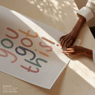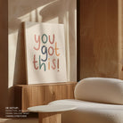 Infuse your space with modern inspiration and expressive design through this beautiful artwork, You Got This!, from our Text and Quotes Art Prints Collection. Created to embody contemporary visual storytelling with refined simplicity, this artwork combines clean composition, intentional typography, and well-balanced color contrasts to create a bold yet harmonious visual statement. Whether minimal, motivational, or concept-driven, it adds focus, personality, and modern sophistication to traditional, modern, eclectic, and contemporary interiors.