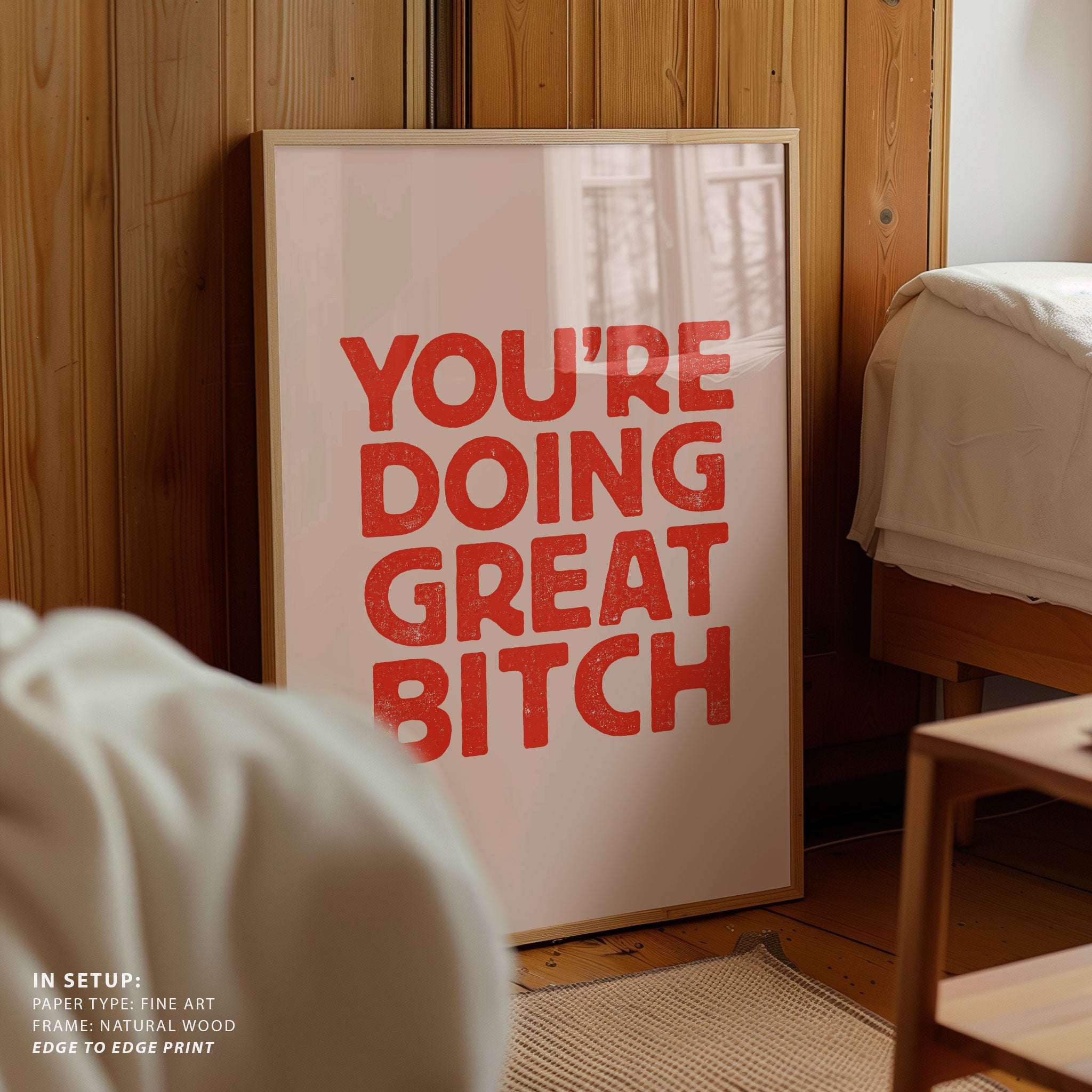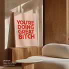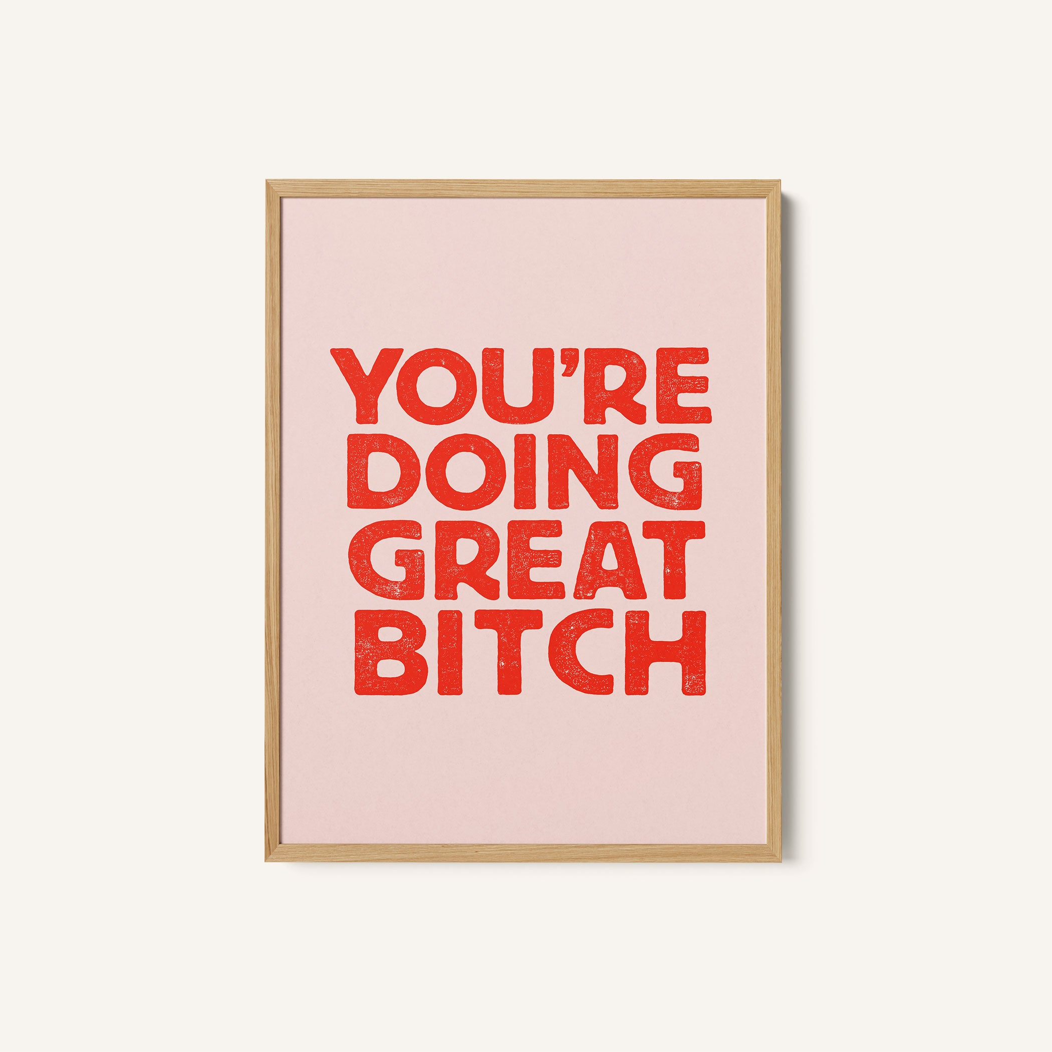 Infuse your space with modern inspiration and expressive design through this beautiful artwork, You're Doing Great Bitch Letterpress, from our Text and Quotes Art Prints Collection. Created to embody contemporary visual storytelling with refined simplicity, this artwork combines clean composition, intentional typography, and well-balanced color contrasts to create a bold yet harmonious visual statement. Whether minimal, motivational, or concept-driven, it adds focus, personality, and modern sophistication to traditional, modern, eclectic, and contemporary interiors.